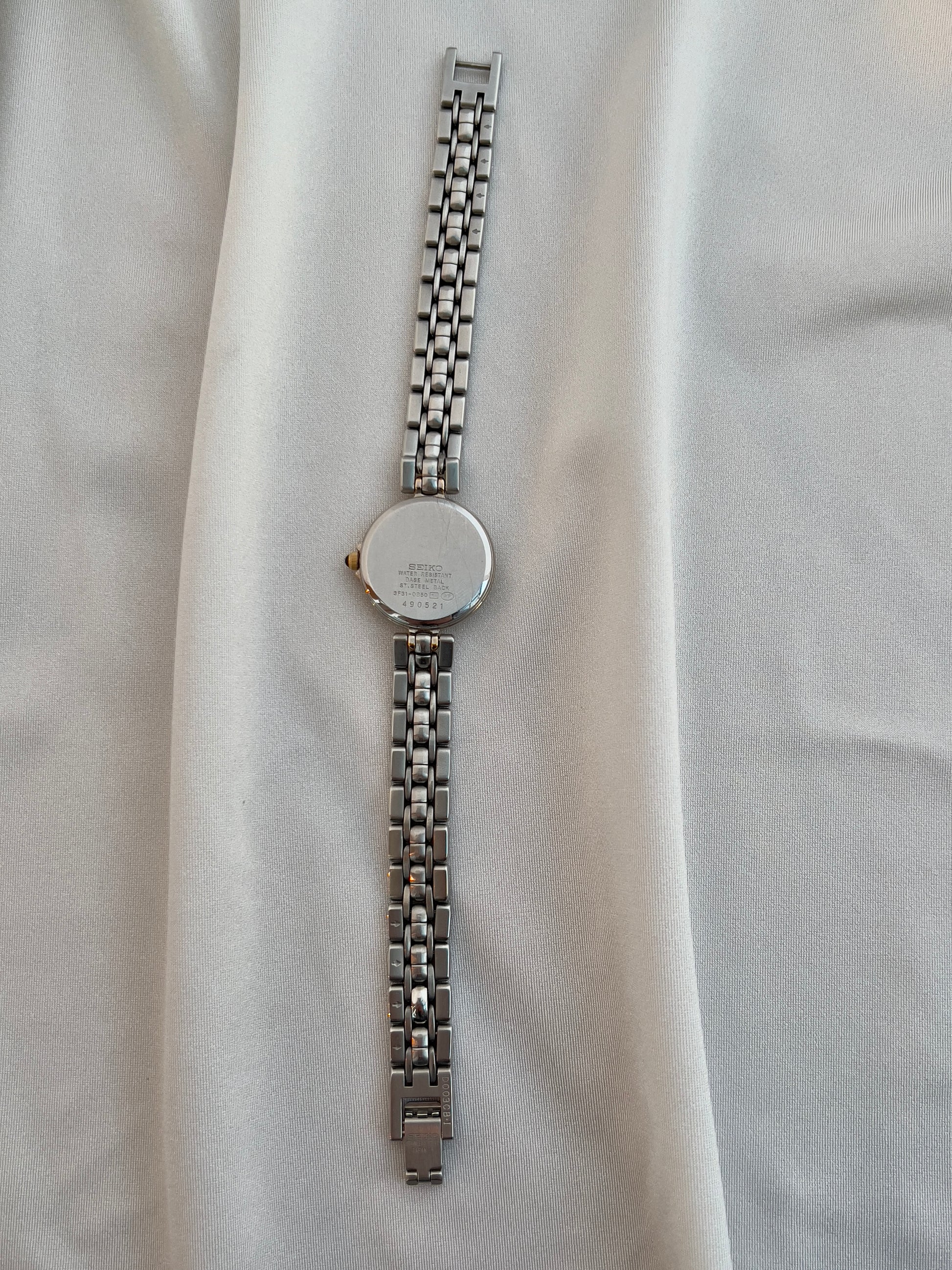 The bracelet is a luxurious five row design in polished steel with a fine vein of gold through the centre, supple and dress ready. Quietly precise quartz keeps time with ease, making this an effortless daily piece for work, dinner, and everything in between. A graceful Seiko for lovers of delicate proportions and classic detail.