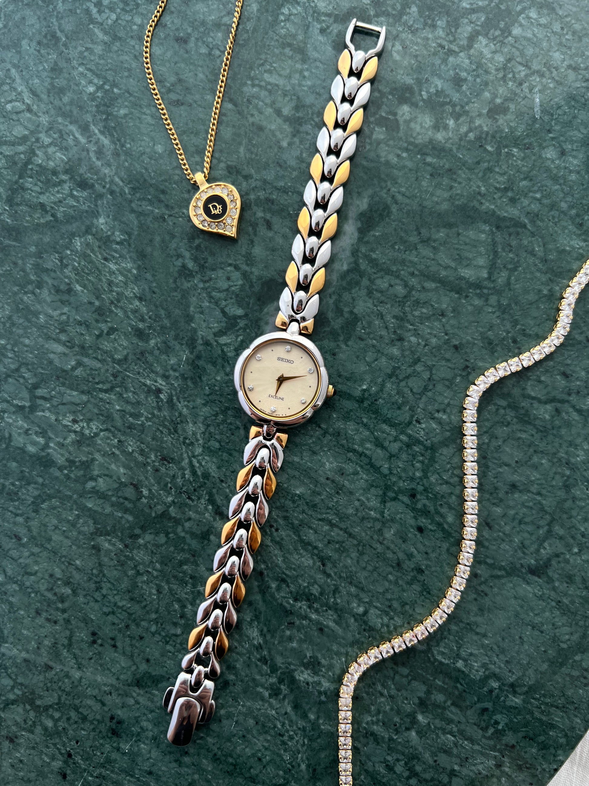 Seiko Exceline Two Tone Leaf Link Ladies Watch with Diamond Markers