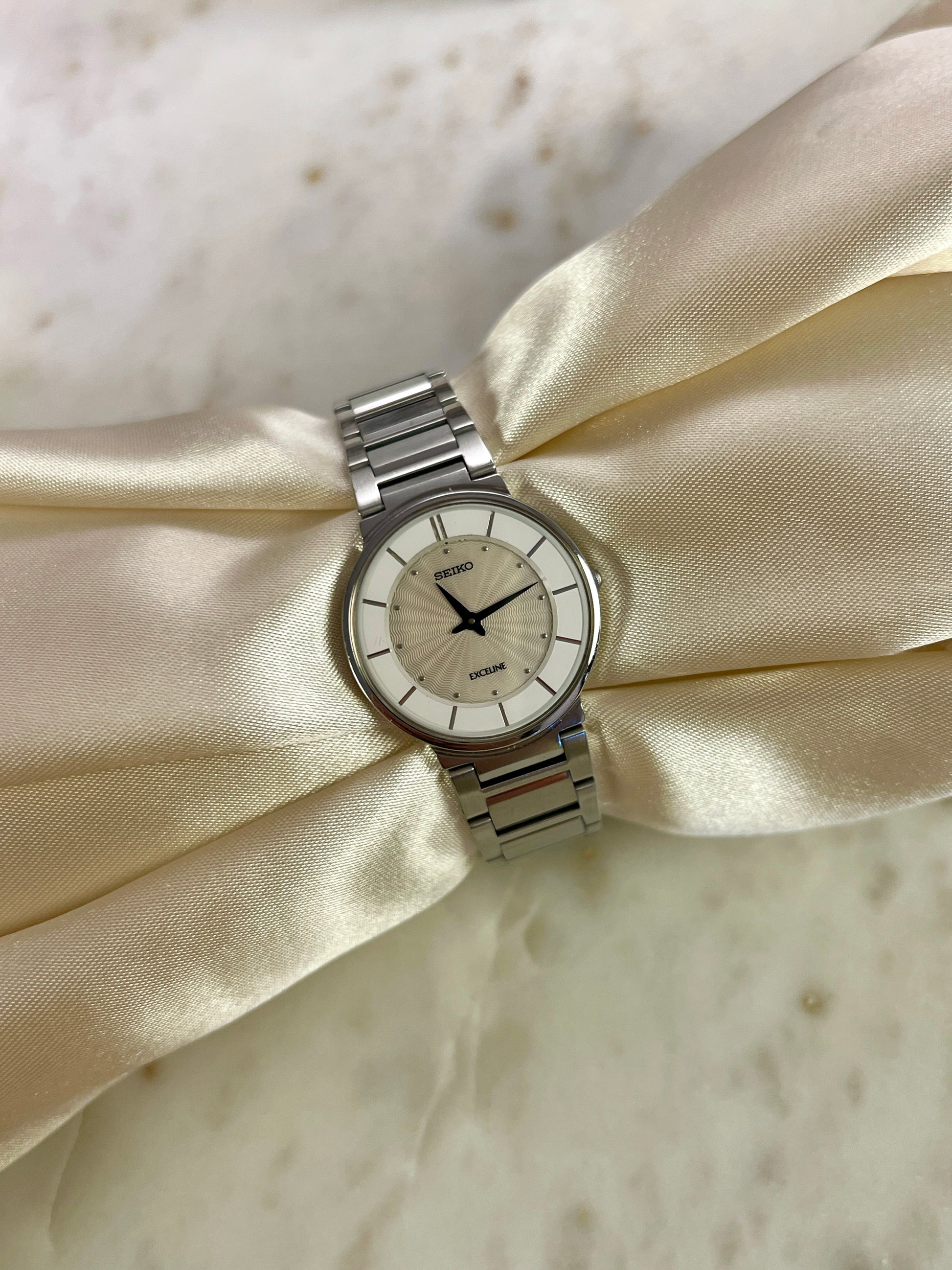 Seiko Guilloche Pattern White Dial Woman's Watch