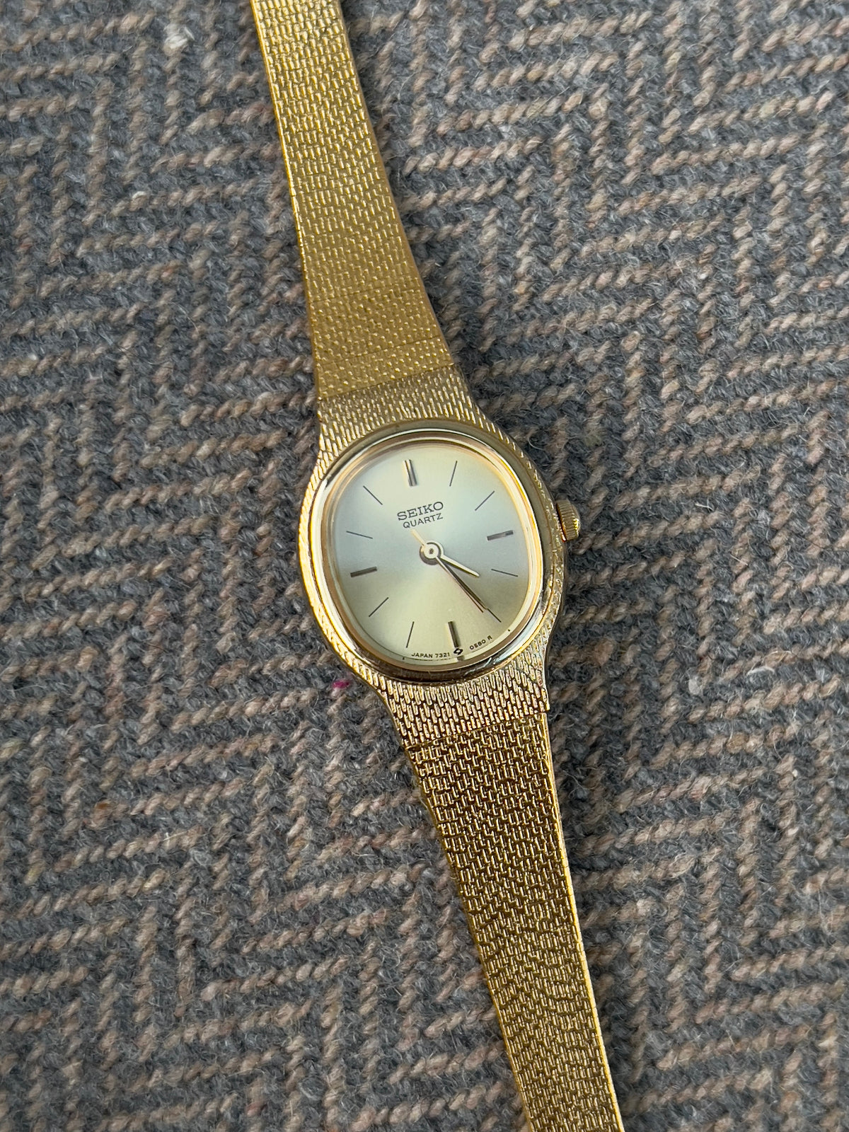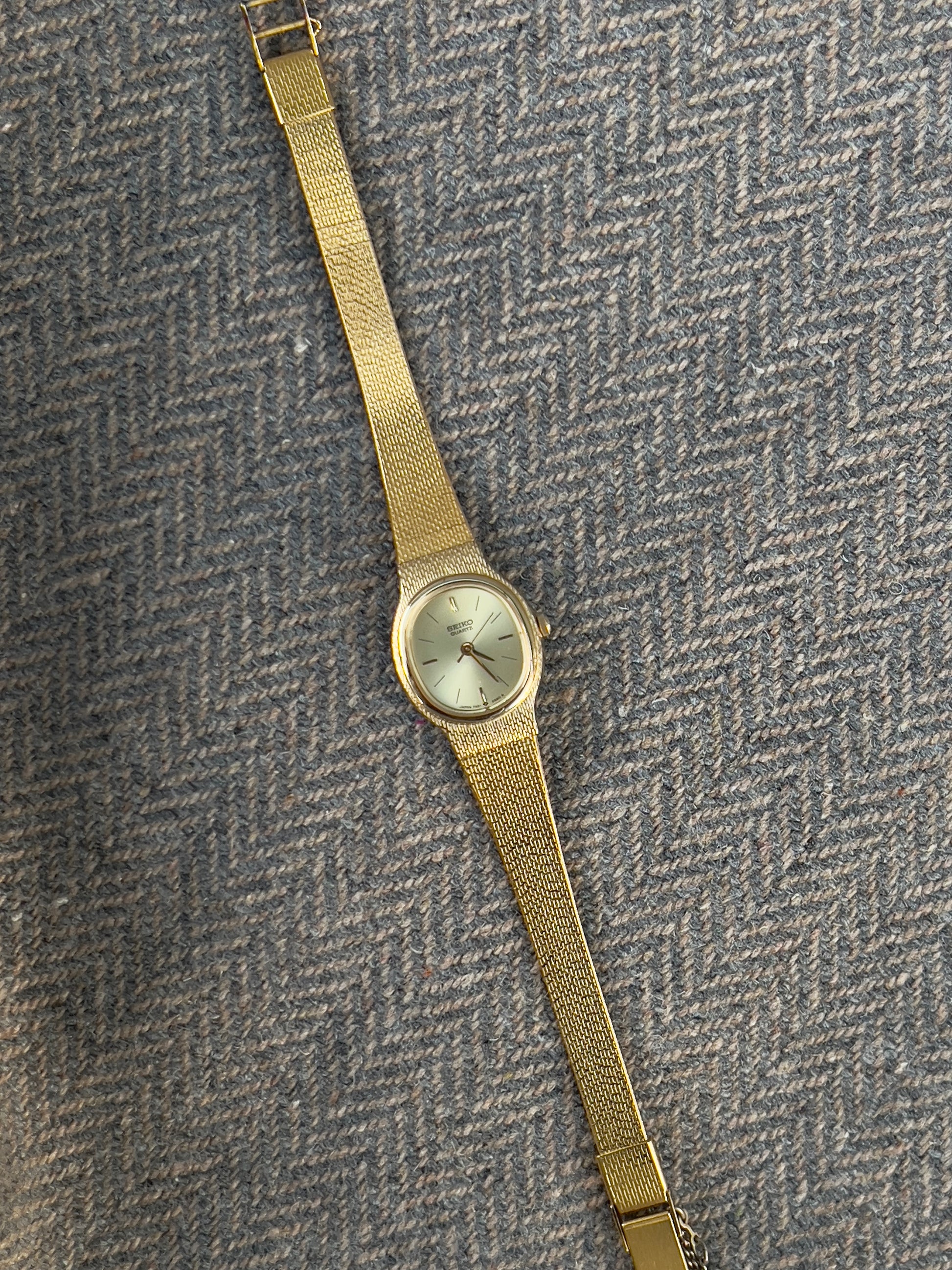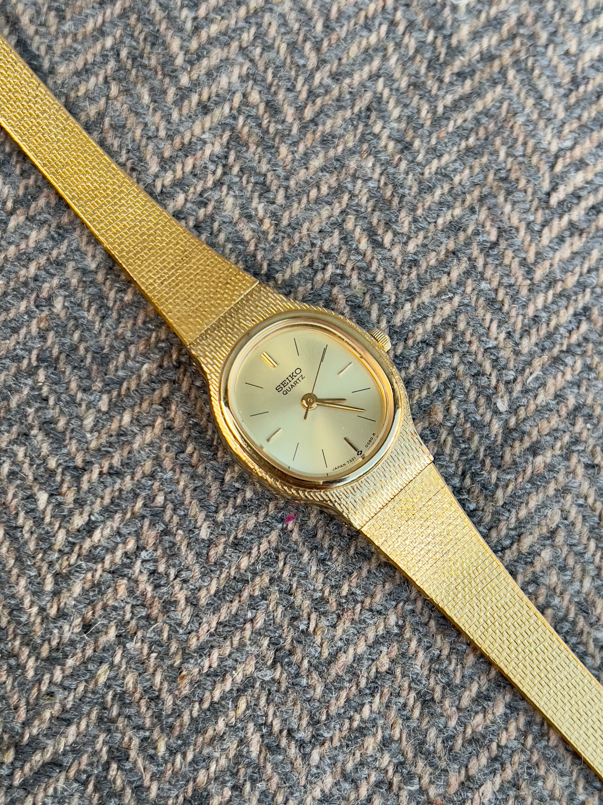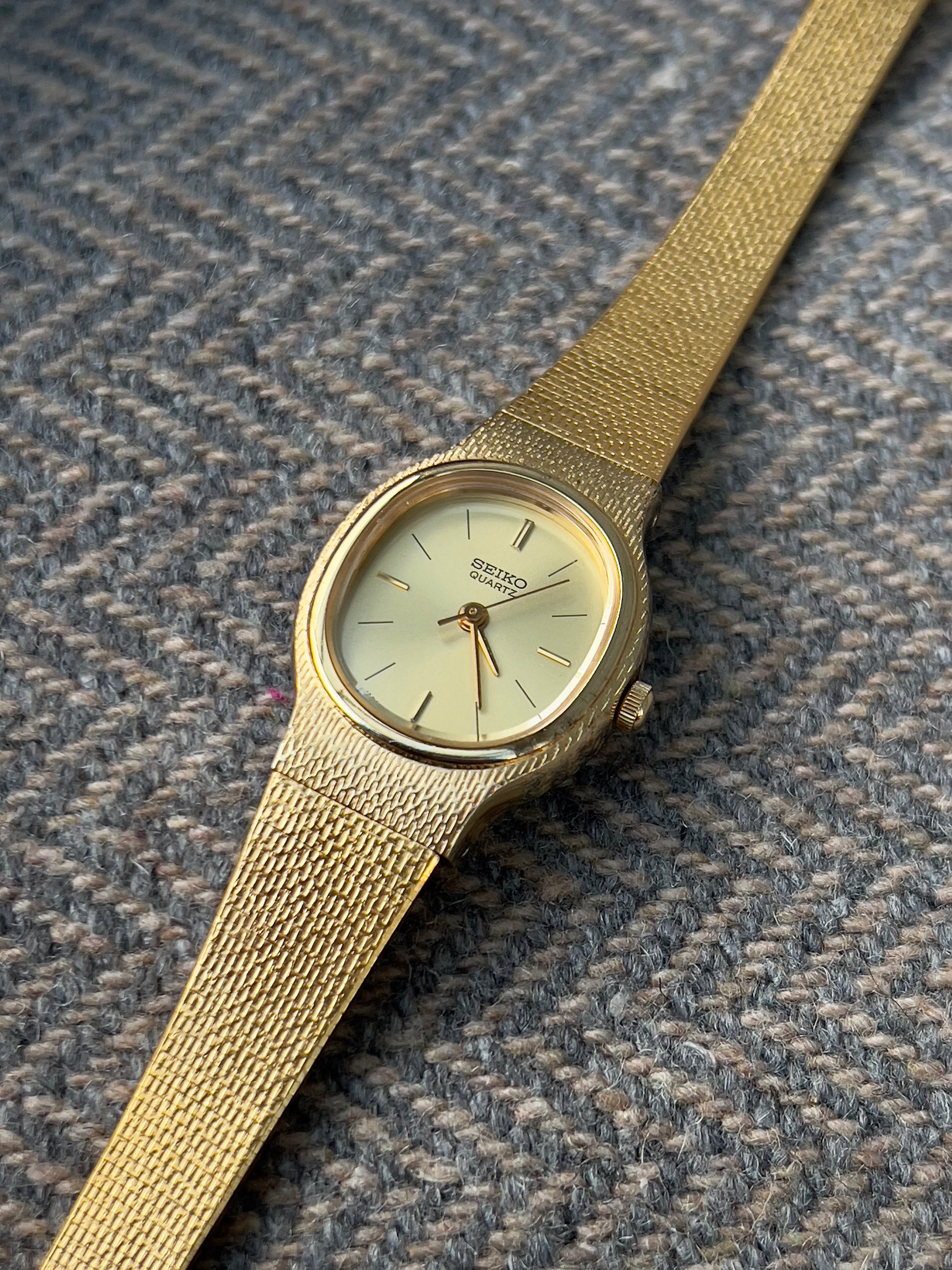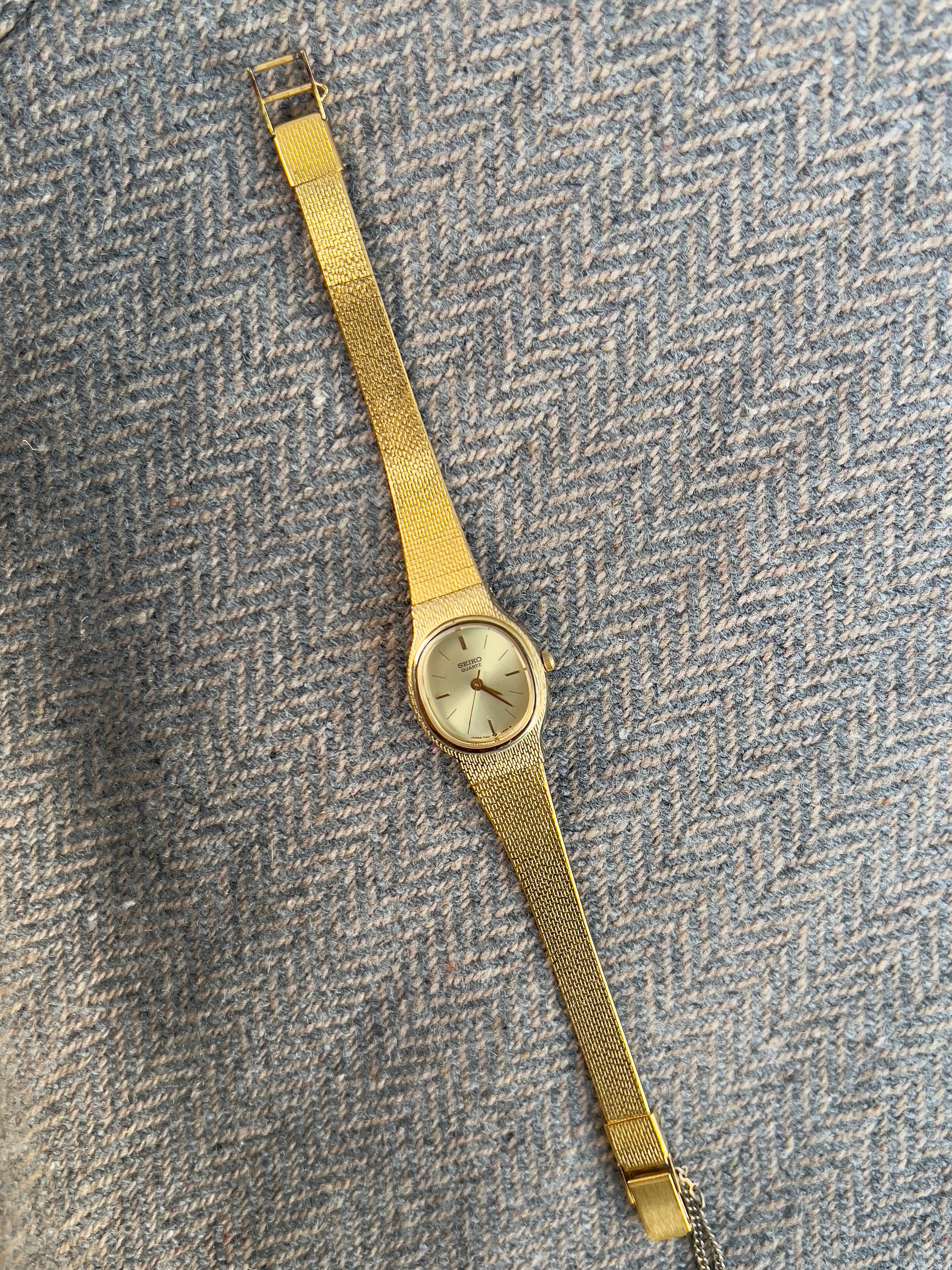 Enhance your style with this stunning vintage Seiko Quartz watch, a perfect blend of classic timekeeping and luxurious jewellery. Crafted with a sleek gold-tone metal bracelet, this watch features a minimalist dial that exudes sophistication.