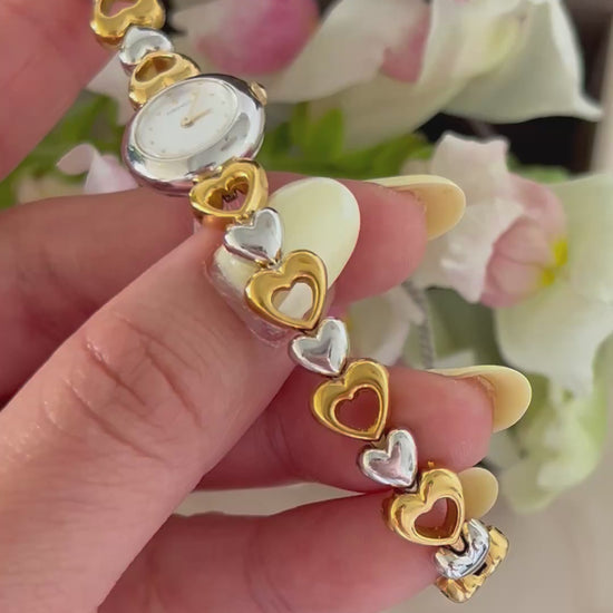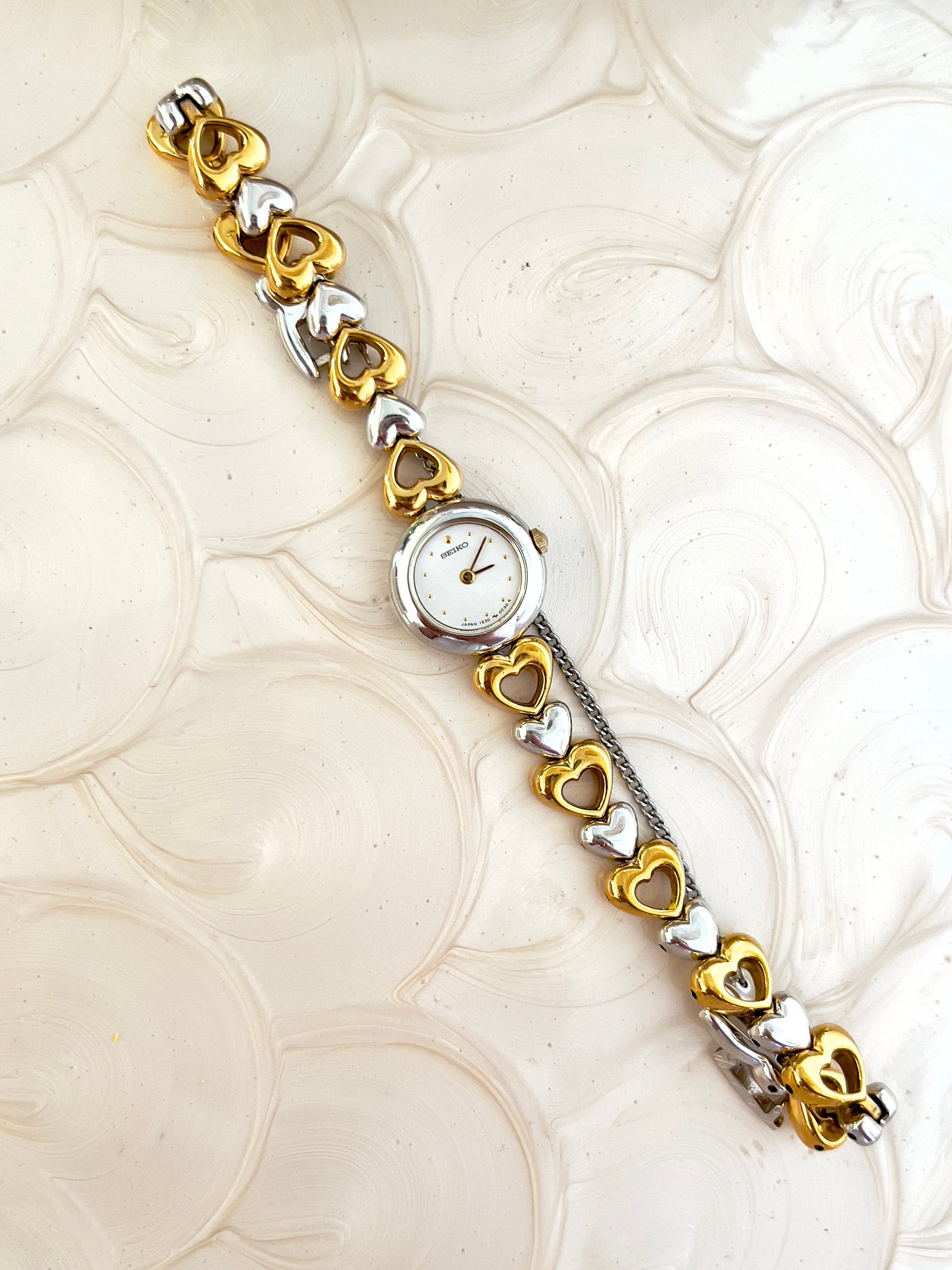 Seiko Unique Dainty Ladies Heart Bracelet Watch in Two Tone