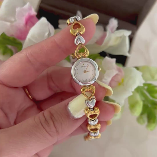 Seiko Dainty Ladies Hearts Bracelet Watch in Two Tone