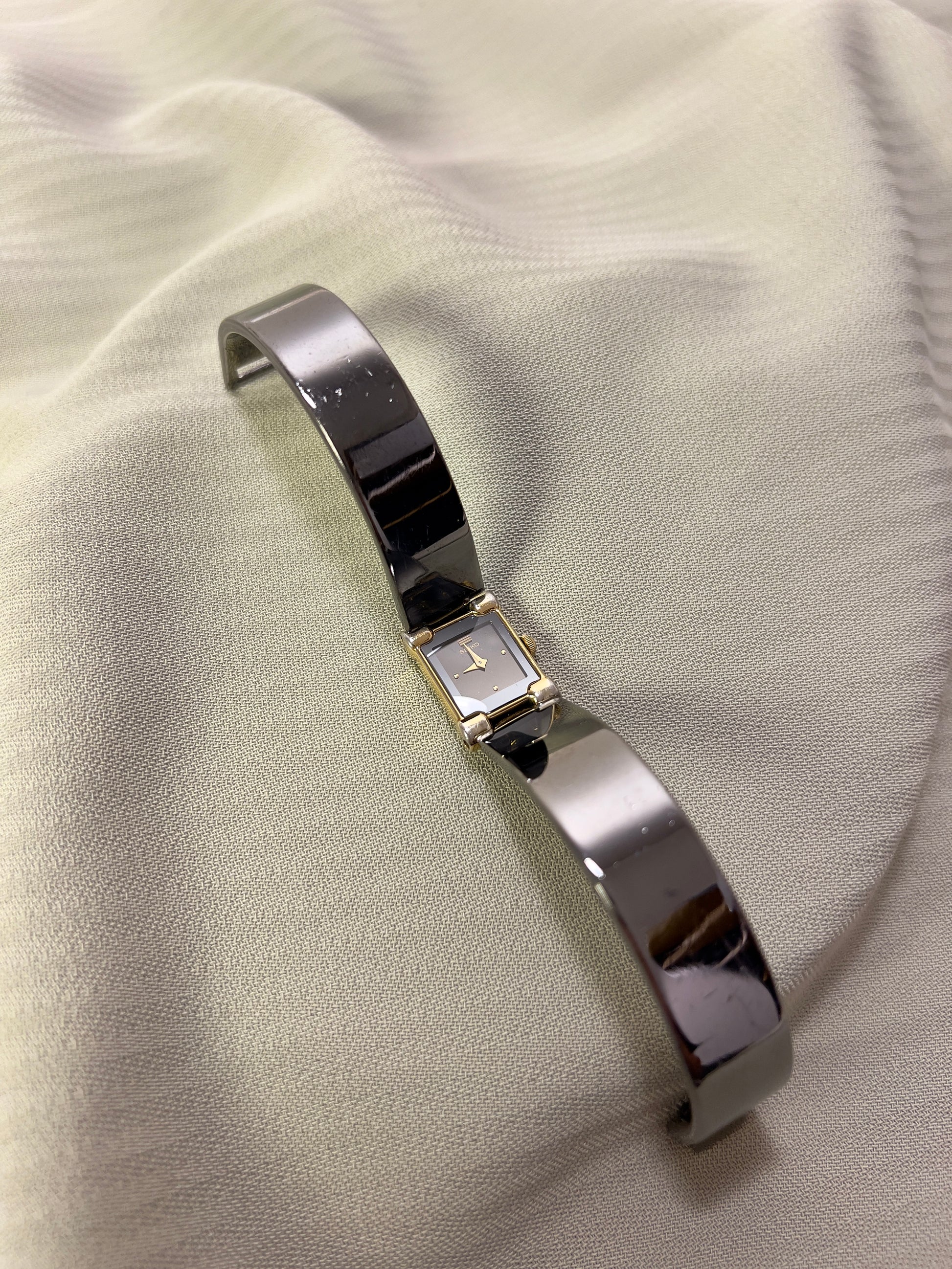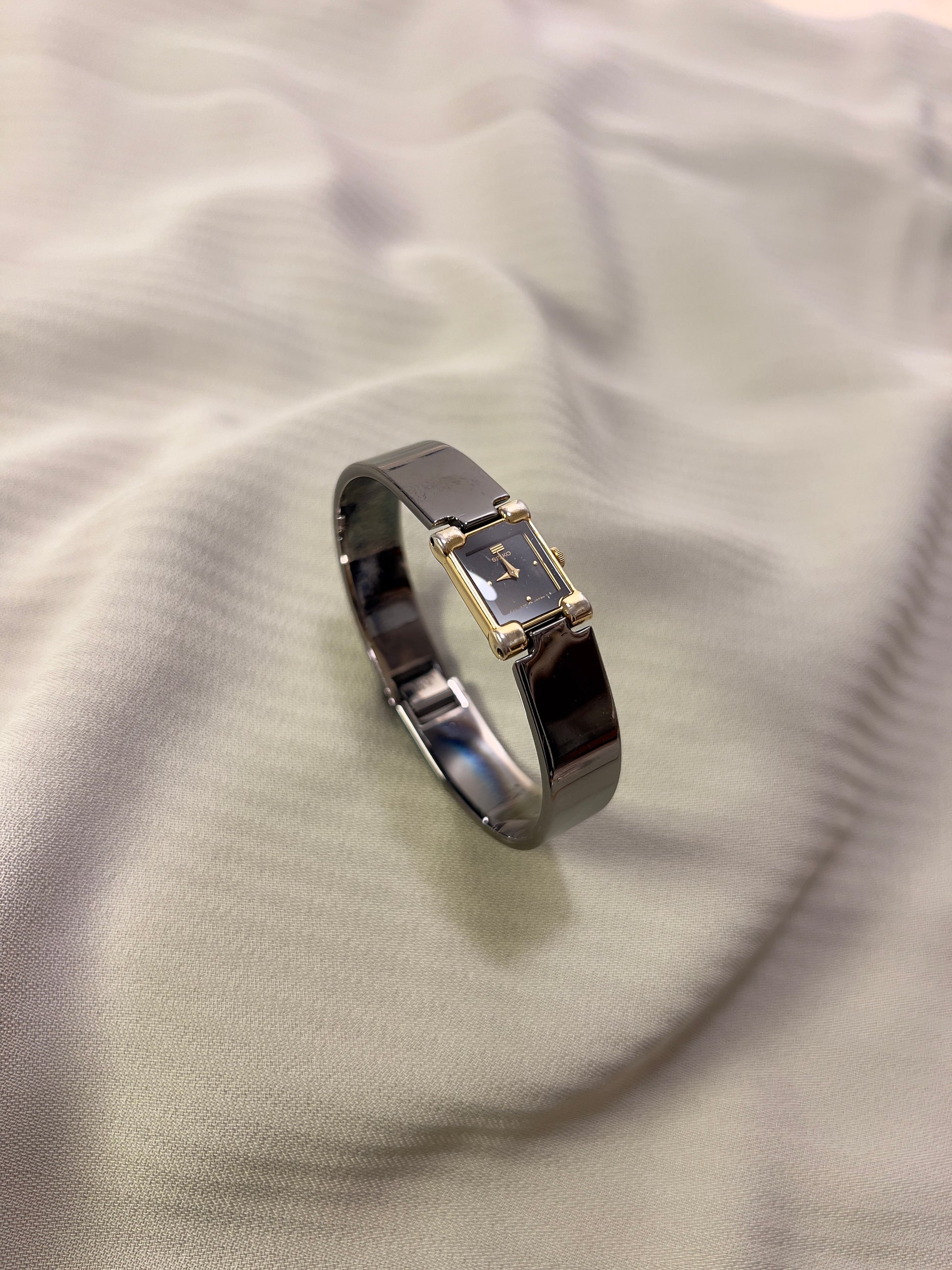 Seiko women's watch that resemble a photo frame. Featuring a rich black dial with applied hour markers on the 12, 3, 6, and 9 position and a unique case, this watch definitely has a unique factor