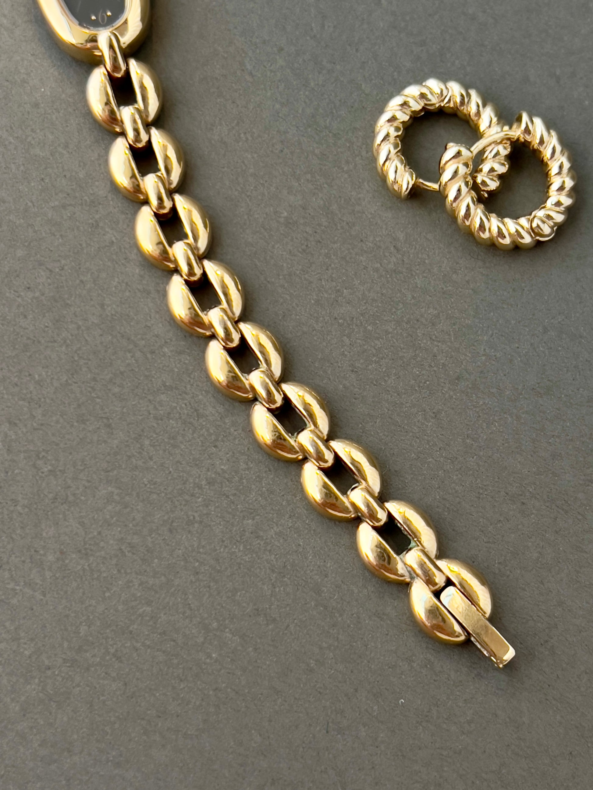 - Intricate gold toned linking bracelet