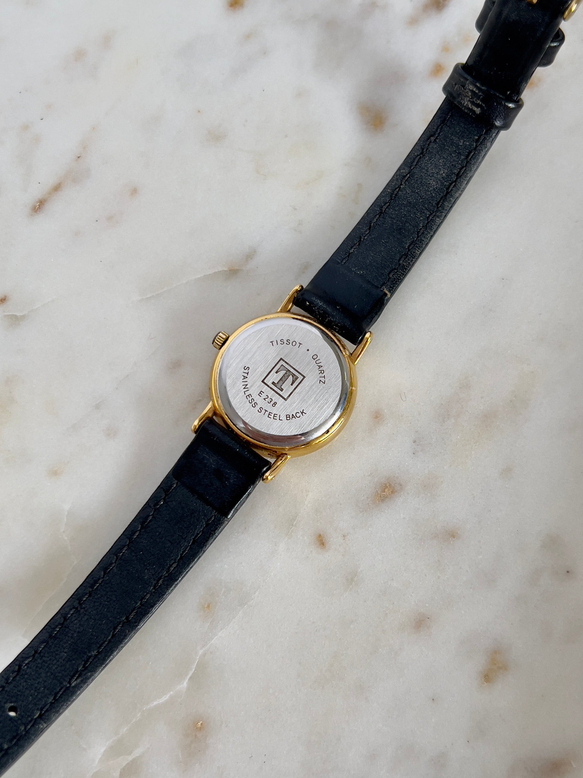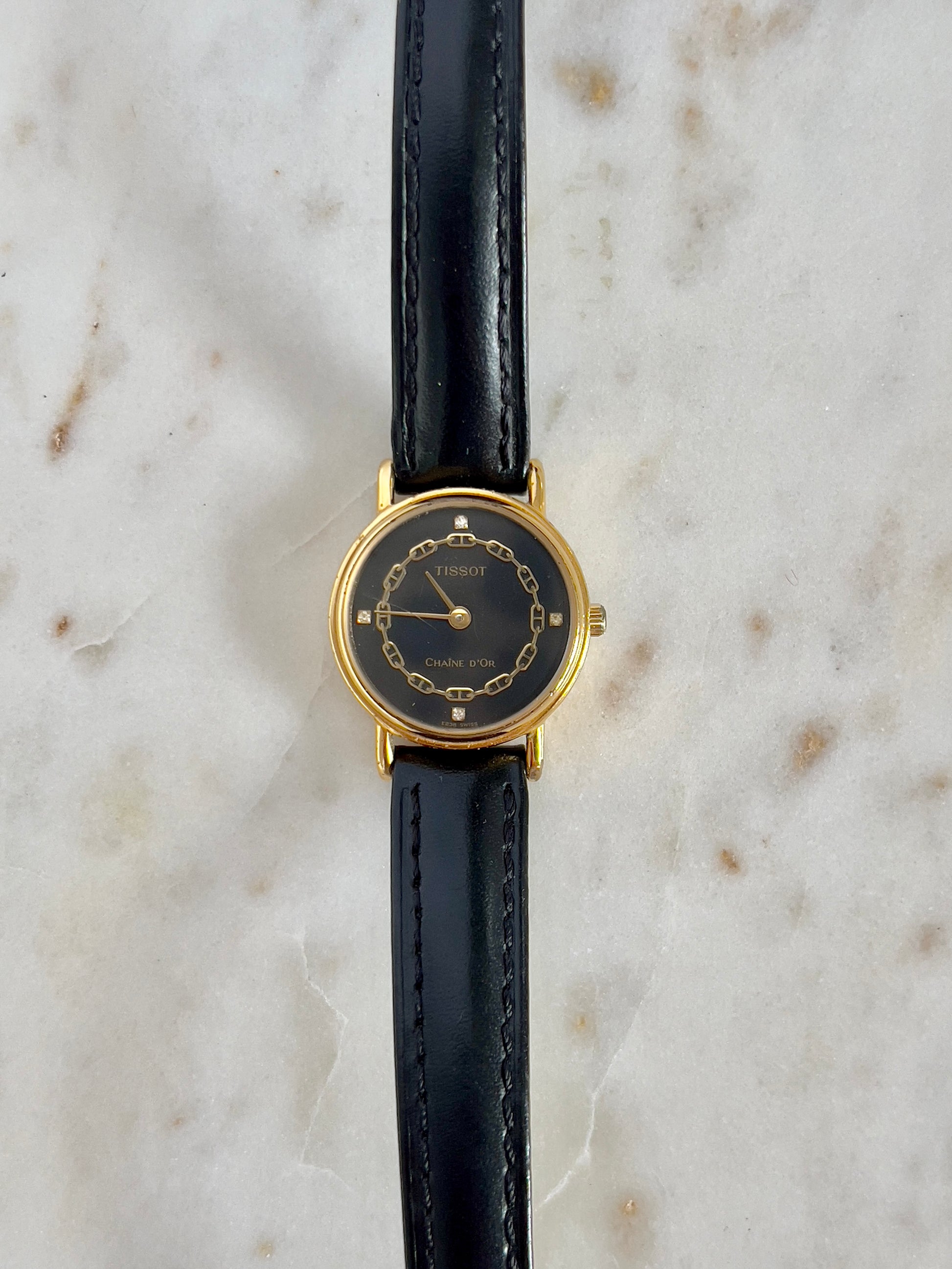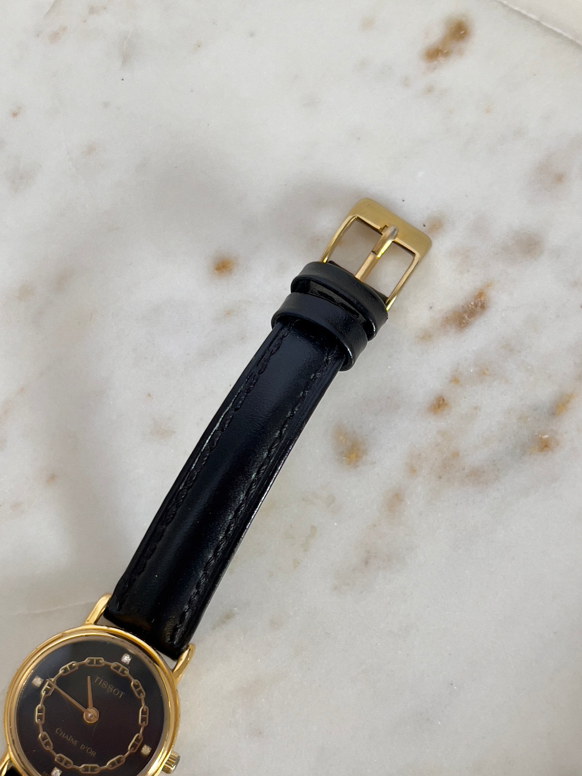 Tissot Chaîne d’Or Ladies Watch – Black Dial, Gold Case, Leather Strap
