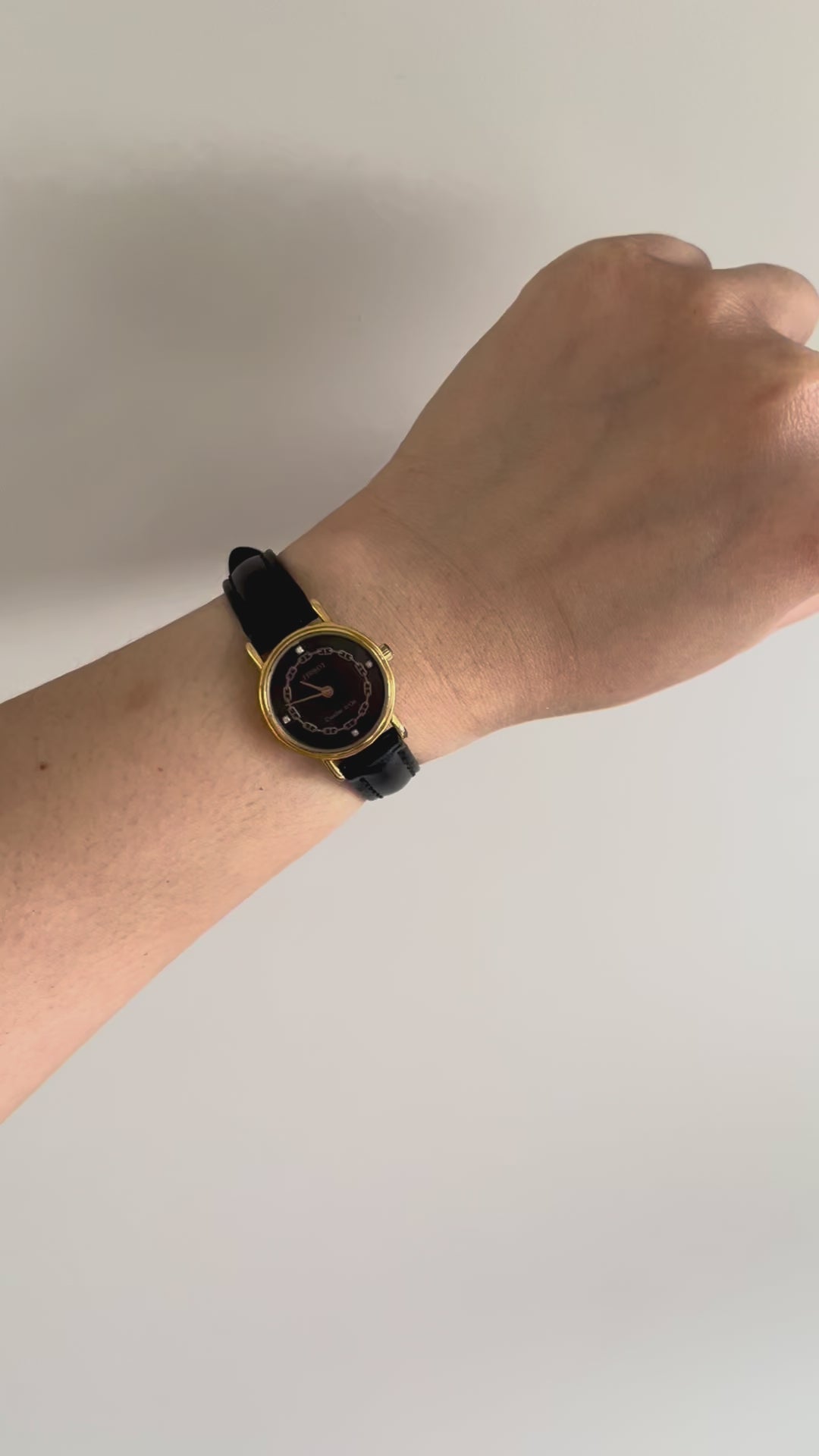The slim black leather strap complements the dial’s dark palette, allowing the gold detailing to stand out with understated glamour. Perfectly sized for a woman’s wrist, this watch blends the artistry of fine jewellery with Tissot’s renowned precision, making it a versatile accessory for both evening occasions and everyday elegance.