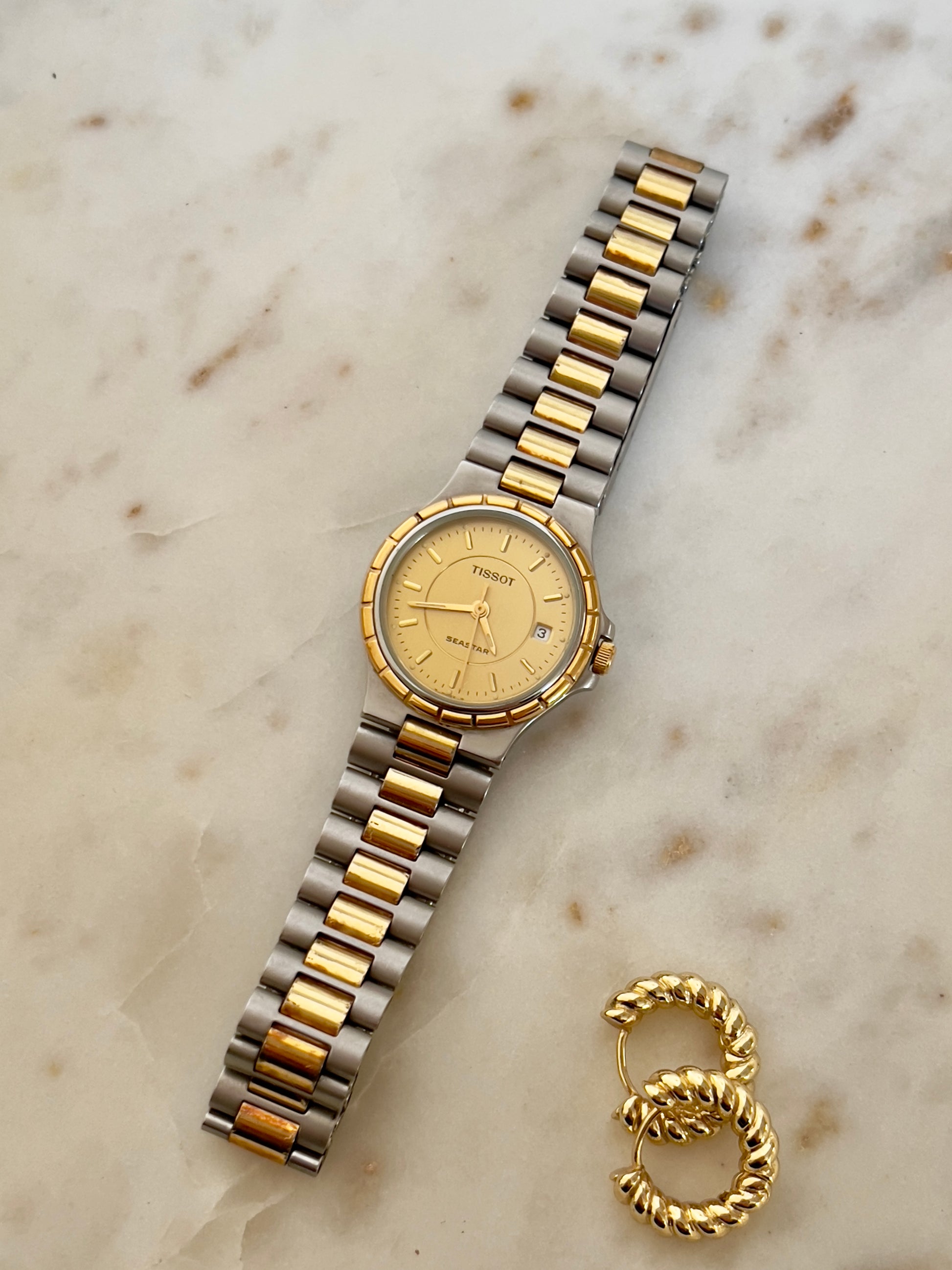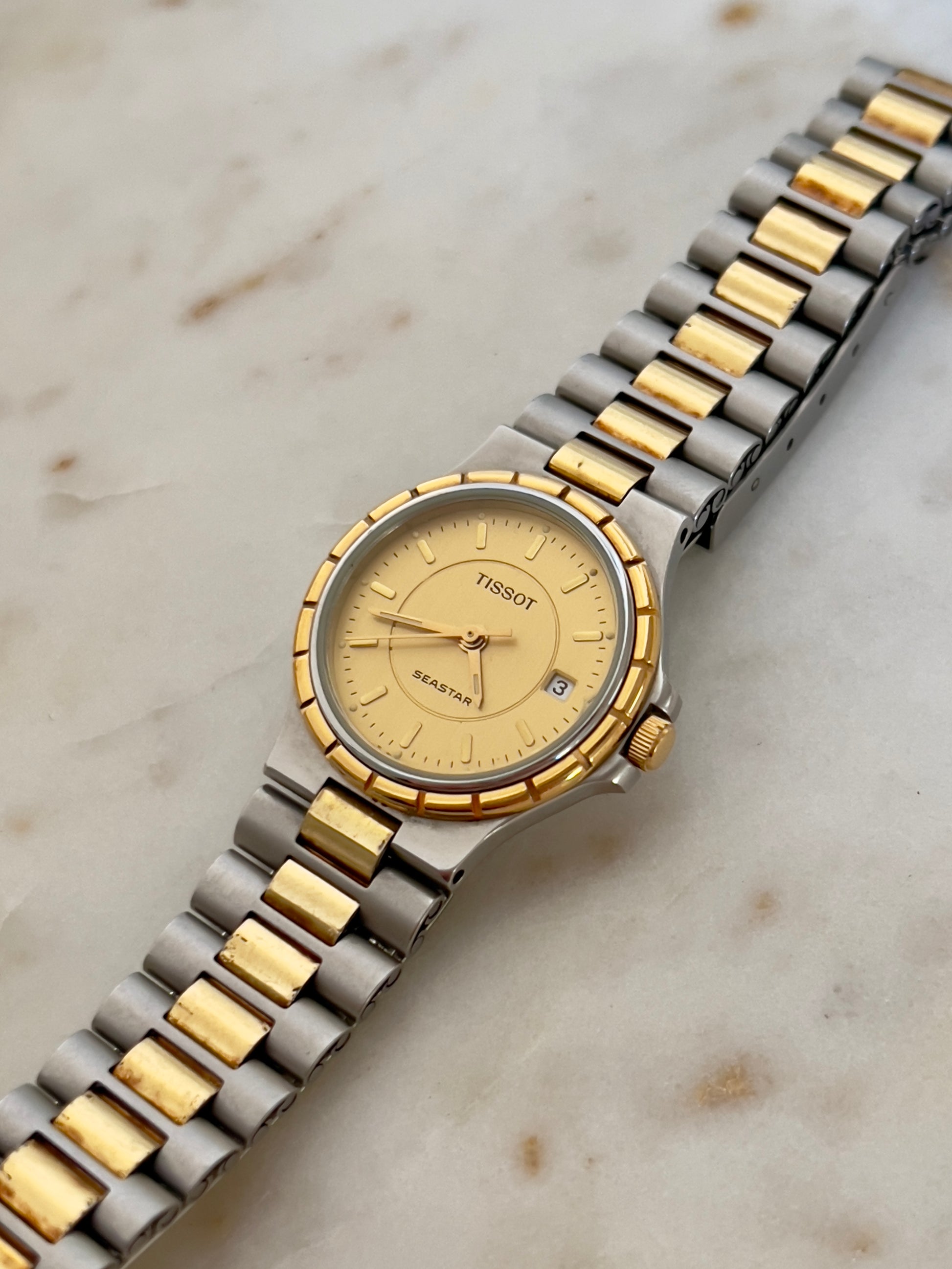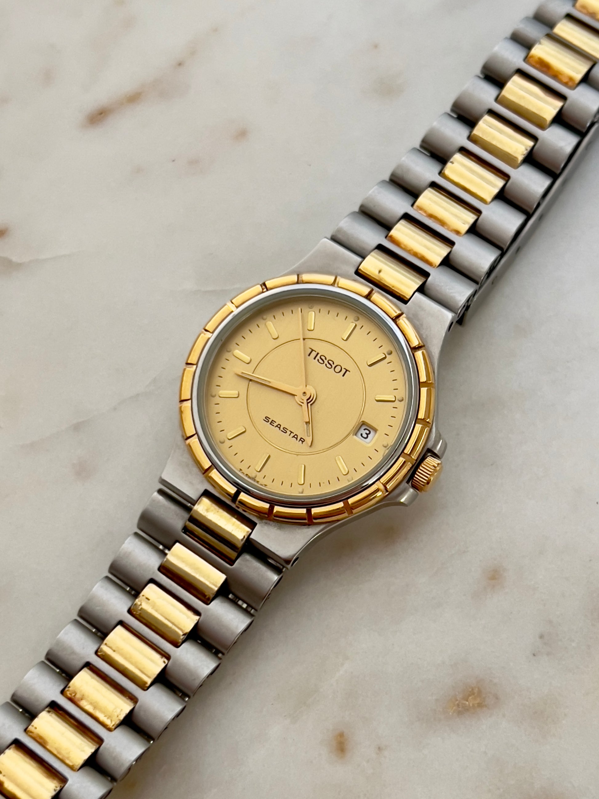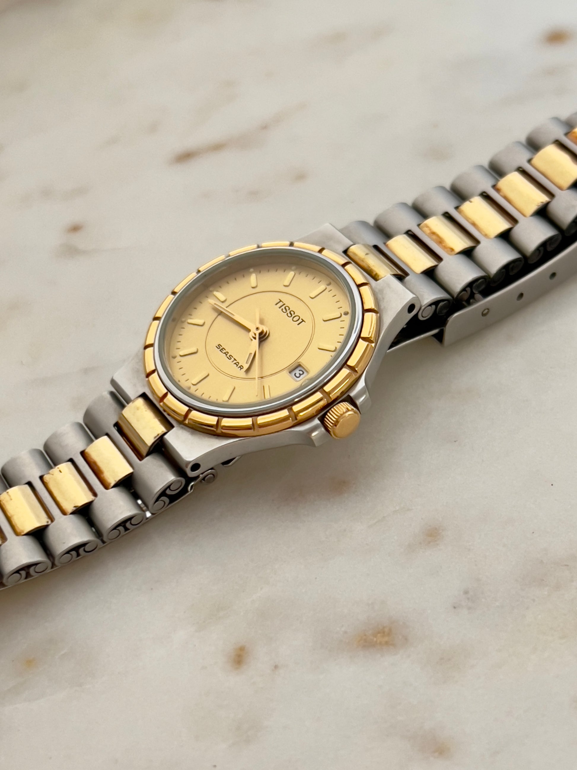Tissot Seastar Two-Tone Watch with Sunburst Gold Dial and Date