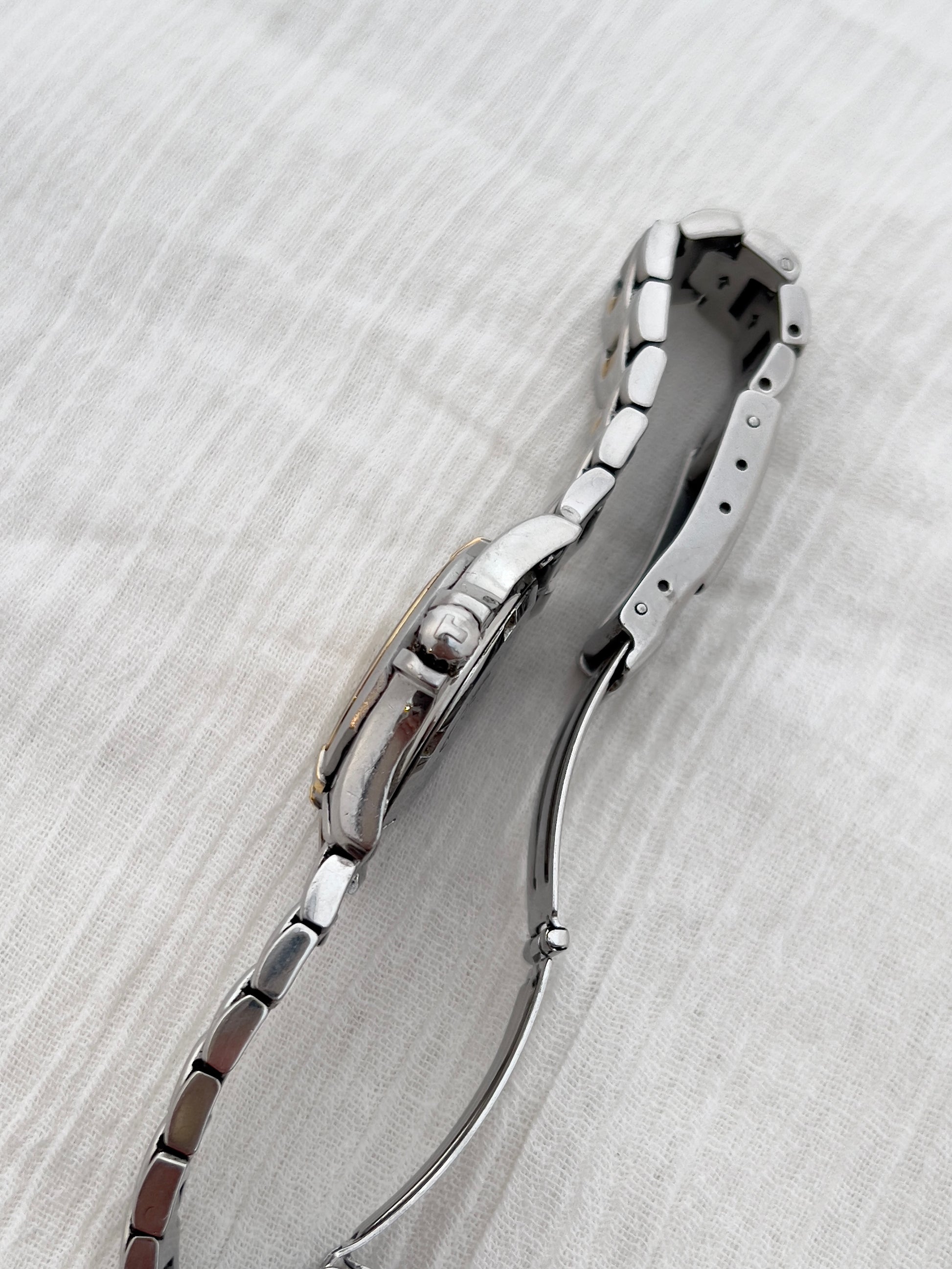 - Gold toned signed screw down crown (unscrew the crown before pulling it out to change the date/time)