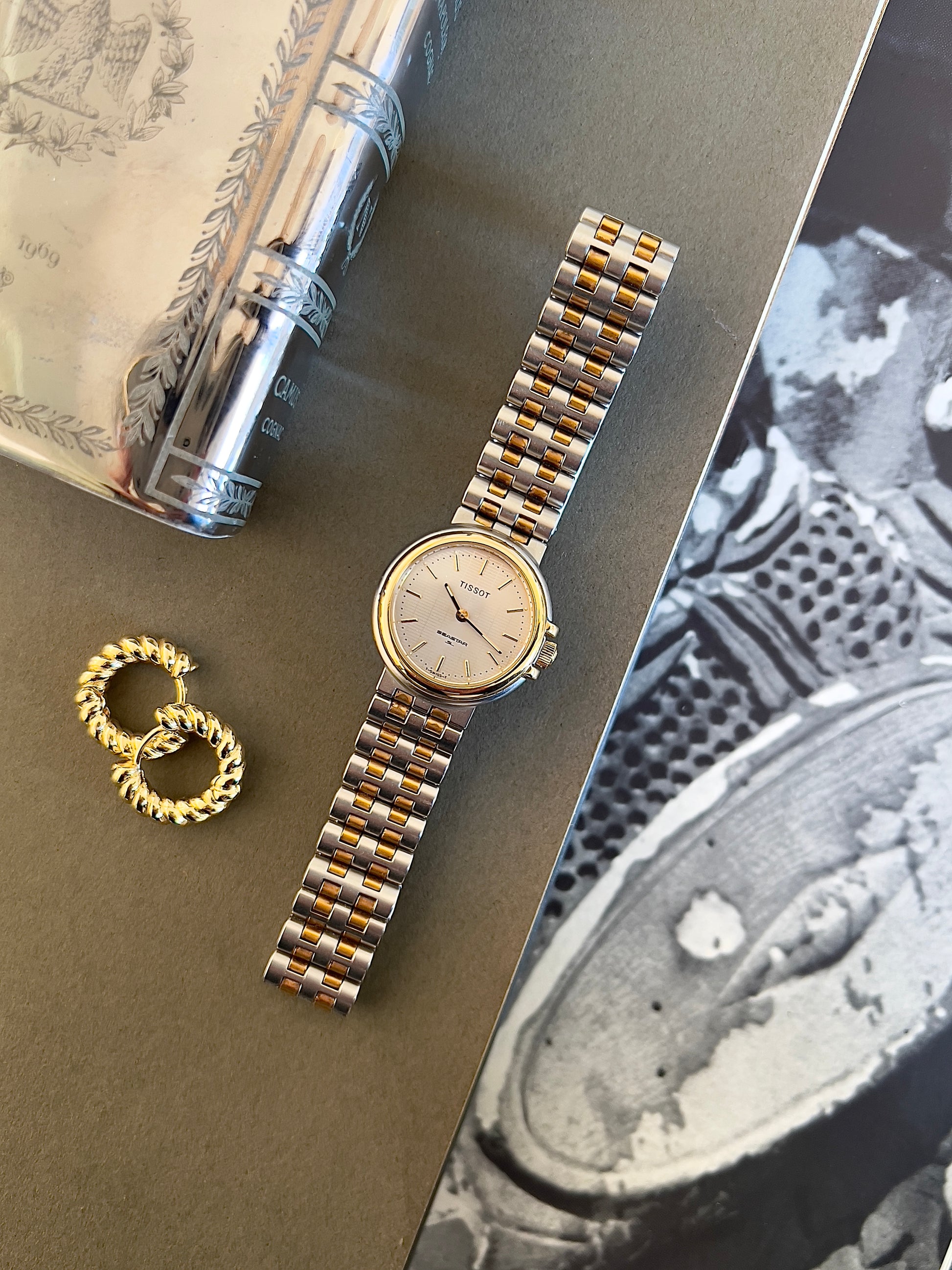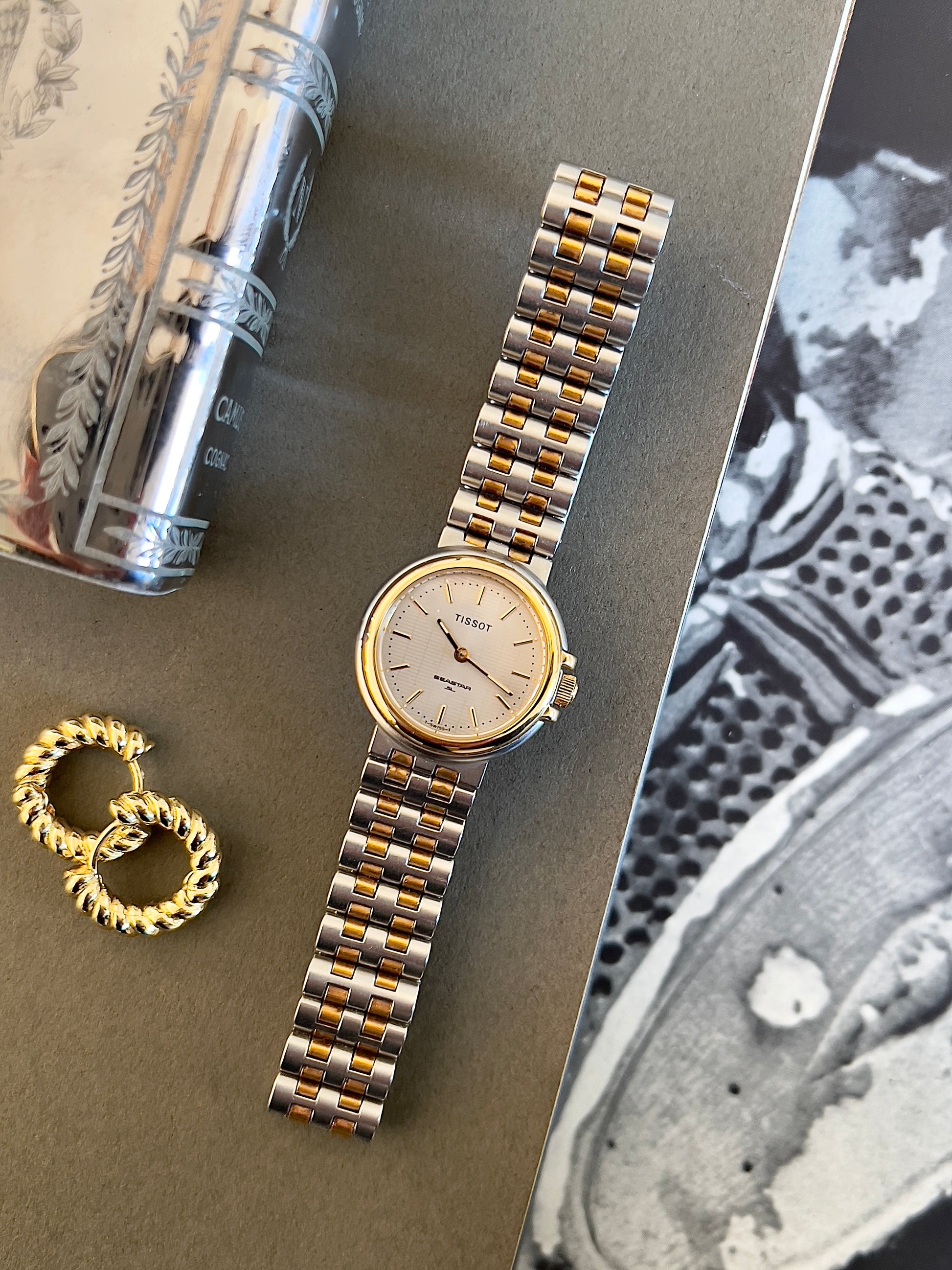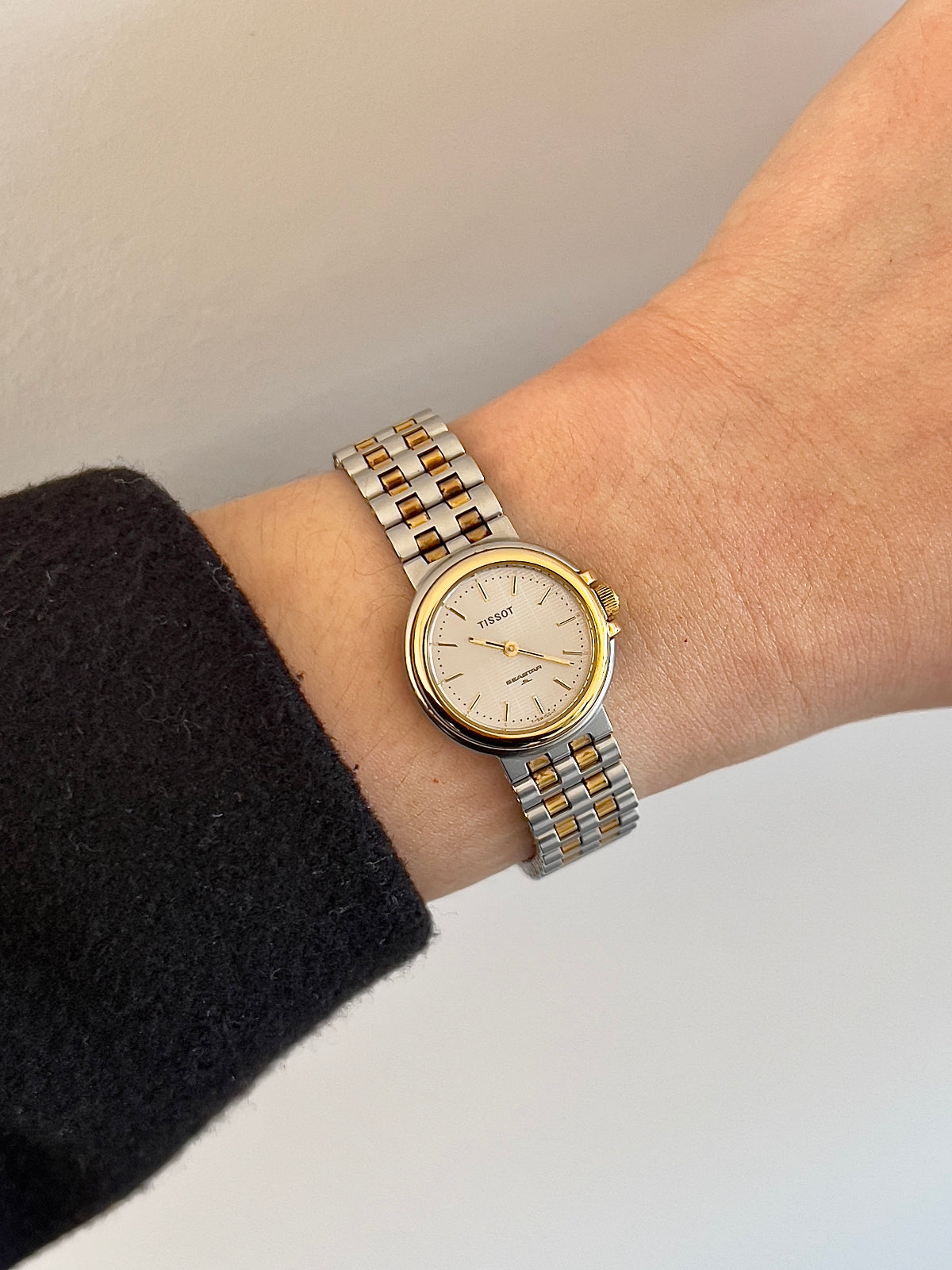 Tissot Two Toned Woman's Watch with Patterned Dial