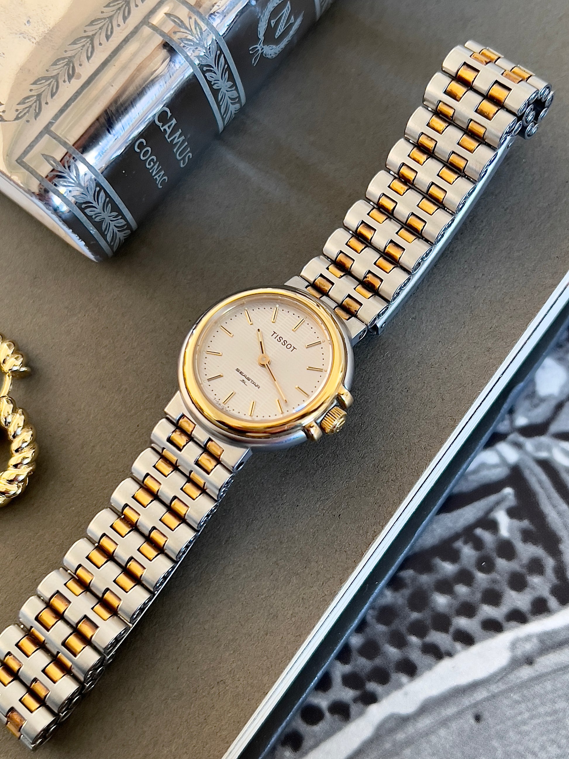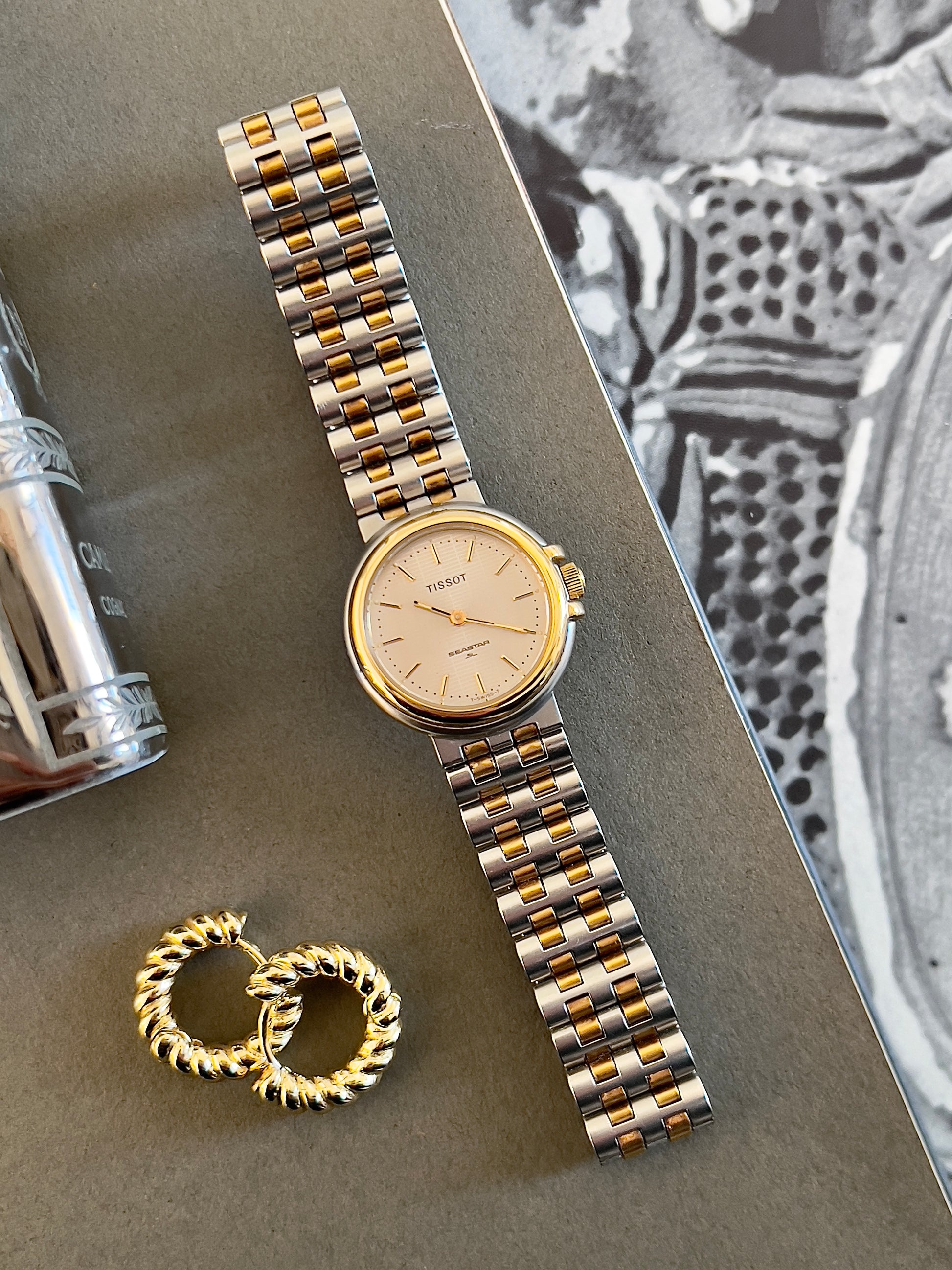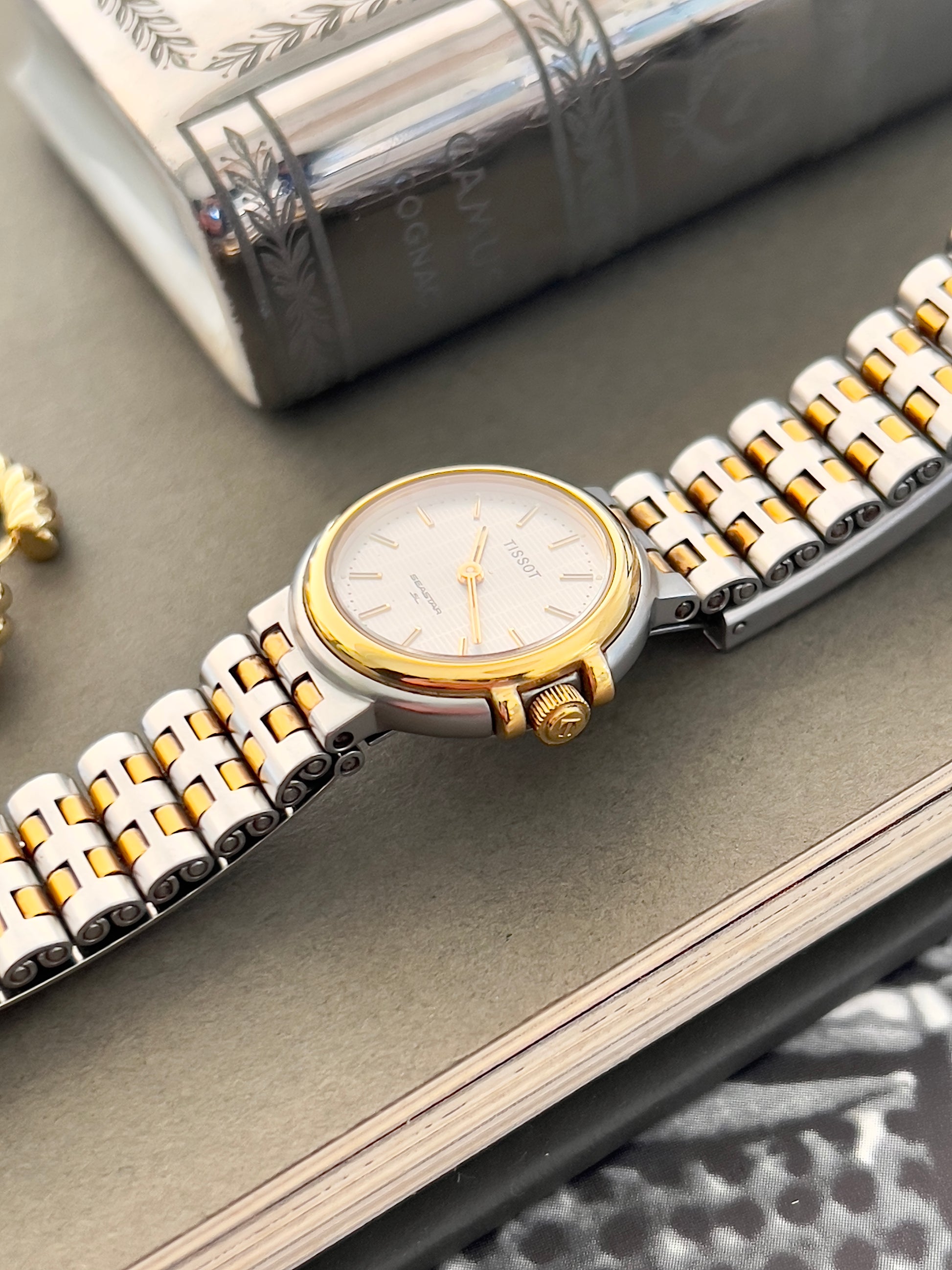 Tissot Two Toned Woman's Watch with Patterned Dial