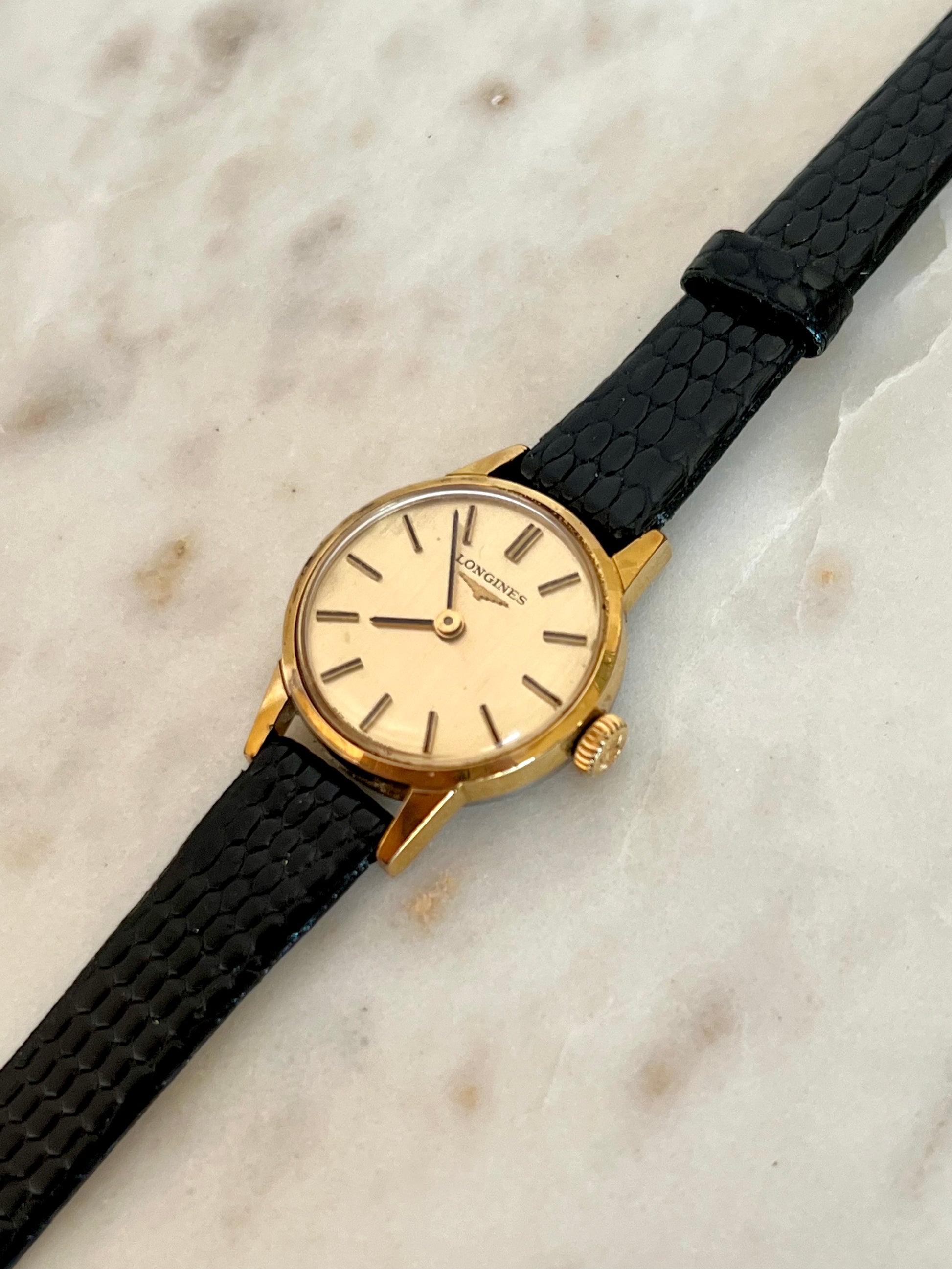 - Crown: Gold toned, Longines signed crown