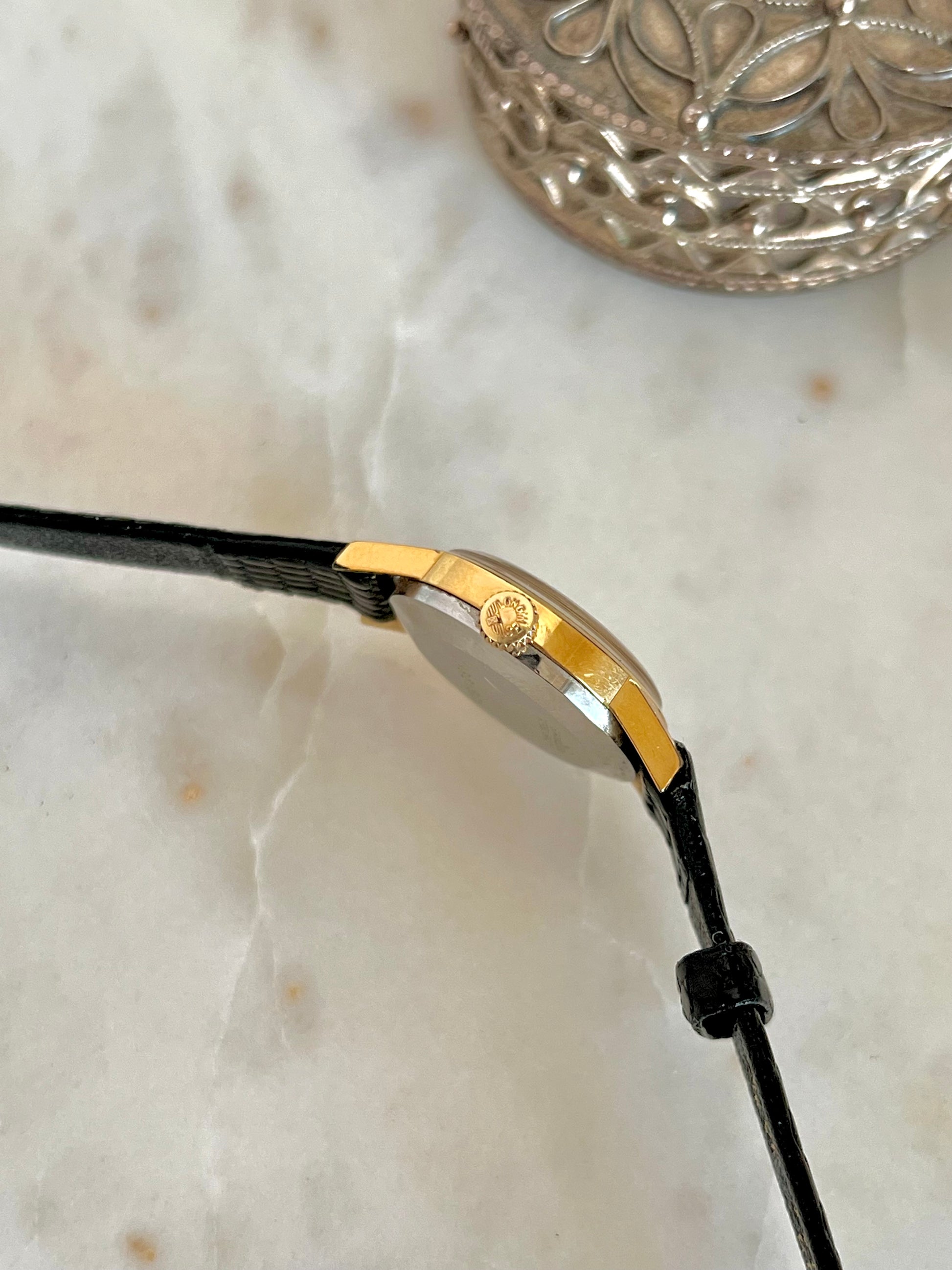 Paired with a black textured leather strap, it gives that put together contrast that always looks expensive, whether you wear it with tailoring, a simple knit, or a white shirt and denim. If you love petite watches that read as jewellery first, this is one of those pieces that quietly does the most.